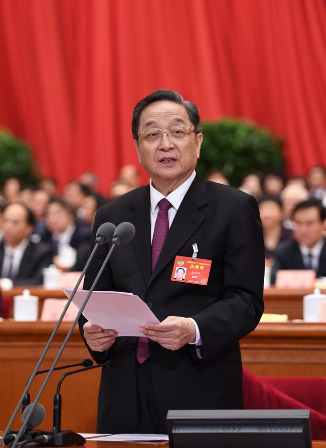 全國政協主席俞正聲宣布:中國人民政治協商會議第十二屆全國委員會第五次會議,應出席委員2203人,今天實到2101人,符合規定人數。