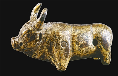 1979年,陜西鳳翔出土過一件金虎符,這件虎符沒有銘文,且體型較小,高僅2.3厘米,長僅4.8厘米,重35.6克。這枚虎符也為臥虎狀,但造型夸張:虎巨目大耳、張口露齒、四腿曲臥、長尾上卷,通身紋飾為凸雕和陰刻,背面還有扣槽??上У氖?,這枚罕見的金虎符僅存半符。此件虎符應該是春秋戰國時期的用品,而秦國首都最早在雍(今陜西鳳翔東),有可能也是秦國所制,但也有專家認為似為仿虎符之作。此件虎符現藏于西安市文物保護考古所。