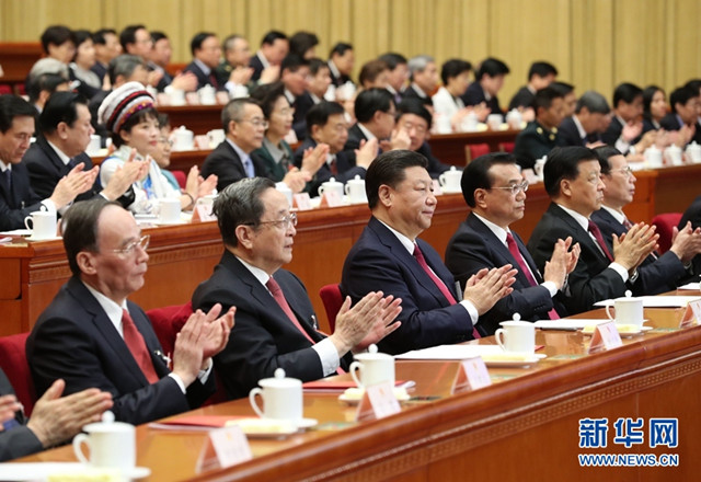 習近平、李克強、俞正聲、劉云山、王岐山、張高麗和大會主席團成員在主席臺就座。