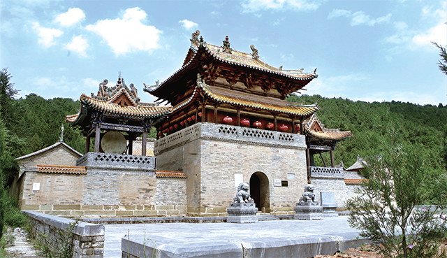 來到山門,可見寺院坐北向南。寺額初名“清涼”,宋改開化禪林,今名開化寺。寺內現存建筑有大雄寶殿、大悲閣、東西配殿、觀音閣、禪堂、偏院等,并有碑碣十余通??计渌聝缺?,開化寺初創于北齊武平二年(571年)。晚唐龍紀、大順間(889—891年),有大愚禪師就山腰鑿穴室建清涼蘭若,寺院規模已相當可觀。宋天圣八年(1030年)改額為開化寺。宋熙寧六年(1073年)重建大雄寶殿。宋元祐、紹圣年間(1086—1098年),再次興工,繪制大雄寶殿內壁畫。金皇統元年(1141年)建觀音閣。元明清各代,屢有修葺,始成今日規模。