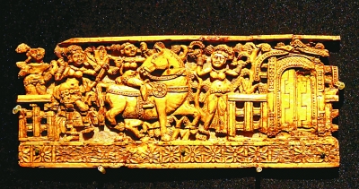 ②貝格拉姆出土的印度風格象牙飾板。本報記者 李韻攝/光明圖片