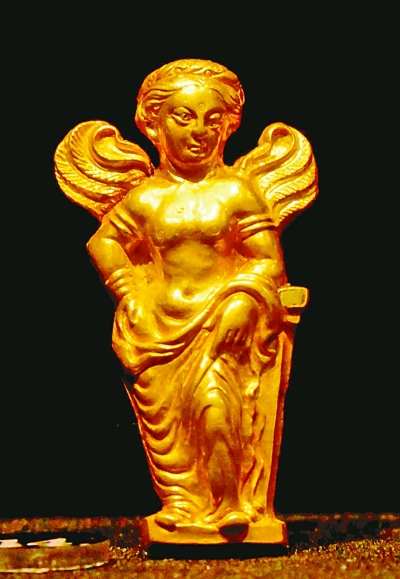 ④蒂拉丘地出土的黃金制成的“帶翅膀的阿佛洛狄特”。本報記者 李韻攝/光明圖片