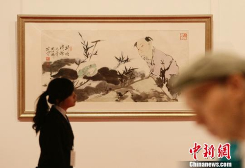 資料圖:范曾作品《荷塘清趣》亮相世界華僑華人美術書法展。中新社發 李慧思 攝