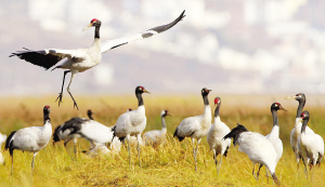 在草原腹地,隨時都會遇上藏野驢、藏狐貍,遠遠就能望見棲息在湖邊水草地上的珍稀黑頸鶴,甚至還能遇上草原的“清道夫”——金雕。