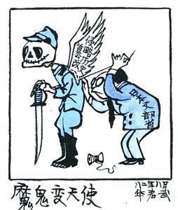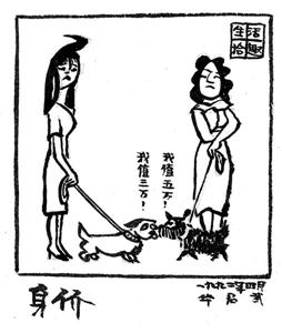 現代漫畫是西風東漸,所以,華君武和當時的不少中國漫畫家一樣,也有自己的“洋師傅”。他經常在英文報紙《字林西報》上看到白俄漫畫家薩巴喬的漫畫,極感興趣,不僅對其畫法努力效仿,連簽名都有意模仿。