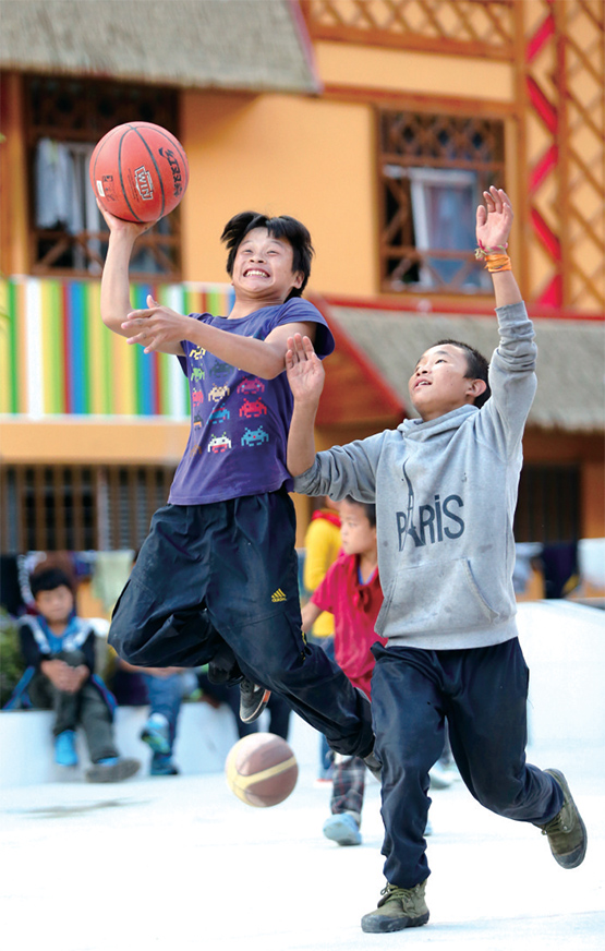 吳然:起初也不是這種寫法。我甚至想寫成一部童話作品,讓獨龍江“自己講述”,還有意加進現代生活元素,讓浪花們互發“微信”。寫了一些,覺得忐忑。發給好友、批評家冉隆中,被他批得一塌糊涂。我認真地思考了冉隆中的批評,翻著采訪本,如同梅西子校長說的,像“找羊肚菌”(一種野山菌)那樣去發現,去認識。也從采訪記錄中重新回到現場,回到水聲喧嘩、爭相向我訴說的獨龍江……于是我調整了思路,抓住教育這個“牛鼻子”,從獨龍族第一個識文認字的孔志清寫起,從點燃獨龍江文明火種的第一個小學——巴坡小學寫起,一直寫到中心學校的“小小夢之隊”到西安參加“2015‘姚基金’希望小學籃球季”比賽奪得獎牌……我找到了一個切入點,那就是獨龍江小學(也許是邊遠山區許多小學)的一個特點:“放月假”。這是因為獨龍江小學都是全日制寄宿學校,又因為學生離學校一般都比較遠,實行的是“月假”,也就是一個月放三次假,10天一次,假期三天。在雨水多的季節,也會個把月放一次八九天的“月假”,在路遠的村寨,老師還要親自把學生安全地送回家。