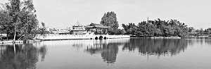 想來,朱先生在那五個月中,每一個清晨或是黃昏,他都會順著這南湖走上一遭。湖堤上種了成行的尤加利樹,高而直的樹干,細而長的葉子,像慣于拂水的垂楊。朱先生一站到堤上就會想到北平的什剎海,南湖也有荷花,讓先生覺得更像什剎海了。