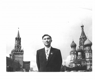 1957年,莫斯科紅場,姜嘉鏘在第六屆世界青年聯歡節上獲金質獎章。