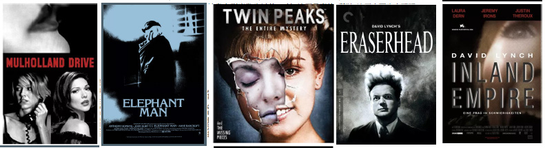 《穆赫蘭道》電影海報、《象人》電影海報、《雙峰》電影海報、《橡皮頭》電影海報、《內陸帝國》電影海報