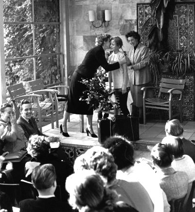 1953年10月,哈通看著林格倫擁抱一個德國“長襪子皮皮”