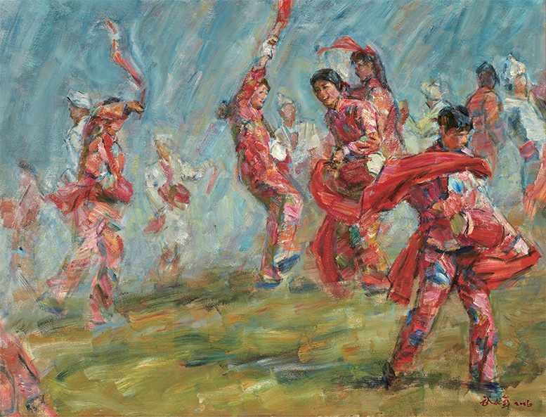 開幕式上,武永年將《信天游》等24幅作品捐獻給中國美術館永久收藏。展覽將持續至5月21日。圖為武永年作品《歡樂的女孩》。 (周 茉)