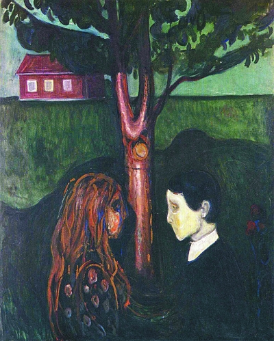 蒙克是現代畫家中對“個性是由沖突造成的”產生興趣的第一人,他的興趣是對弗洛伊德理論的藝術再版。蒙克和弗洛伊德似乎從來沒有聽說過對方,但是,他們之間達成了一種默契的、了不起的共識:自我是欲望的不可抗拒的力量,與社會約束的不可動搖的客觀進行會戰的戰場,每個人的命運都可以被看成是對他人的警戒——至少是一個潛在的警戒,因為包含著所有被束縛的、充滿貪欲的社會動物所共有的力量。