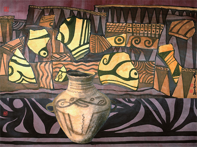 周韶華1950年畢業于中原大學美術系。從上世紀80年代開始,他多次沿黃河和長江溯源考察,行程約20萬公里,創作了大量面目一新、具有深刻文化意蘊的優秀作品。中國美協主席劉大為認為,周韶華用中國的材料、中國的方法,在中國文化的基礎上進行創新,形成了鮮明的藝術風格。中國國家畫院院長楊曉陽說,周韶華是一位具有文化自覺和文化擔當的藝術家。在中國美術處于中西交匯、新舊轉型的節點時,他和同輩的藝術家們自覺承擔起了為中國當代美術探索出一條道路的責任。本次展覽將持續至6月12日。圖為周韶華作品《家園系列之一》。 (小 辰)