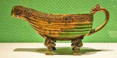說到紋飾之美,就不得不提商周時期精美的青銅器,此次展覽也匯集了各地出土的多件青銅器精品,主要集中在第二單元展出。俞嘉馨介紹,商代和周代的青銅器在紋飾上有很大不同。商代青銅器多為滿飾,除了刻畫主體紋飾,還會用精細的紋樣填滿空白部分,好比在畫布上著了一層底色;而周代青銅器對主體紋飾塑造得非常細致,但對紋飾之間的空隙則做了留白處理。