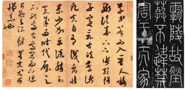 左:米芾《論草書帖》 右:李陽冰《三墳記》