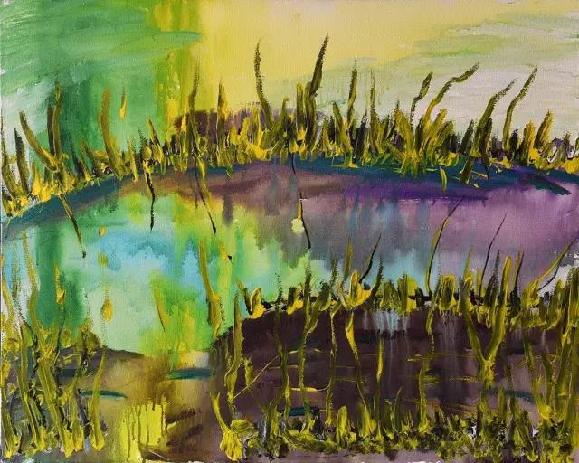 她的布面油畫作品,在短短兩年中實現著升華和蛻變。創作之初她在色彩的世界中經歷著闖入樂園的快樂與感動,繪畫中追求濃墨重彩和夢幻般的場景表現,能帶給觀者強烈的視覺沖擊,但有時也會有稍許的生硬。