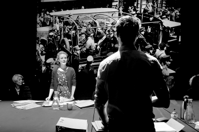 近年,紀錄劇場在中國業內越來越受到關注,克羅辛格也介紹了他的工作方法。排練之前,他先和杜拉一起工作了半年時間,之后用7周跟演員一起工作。這個過程有點像在大學里的討論會,互相提出問題,直到最后,提出越來越精準的問題?!拔业难輪T必須要讀很多文獻,他們要熱衷于閱讀,并且是優秀的演講者。因為當你在劇場里講出一段臺詞時,你還要接下去解釋它?!闭劦郊o錄劇場中的表演,克羅辛格說,“如果演員太去‘演’,那么觀眾就沒事干了。我們要創作出一個個角色的身影,讓觀眾可以自由地去填充上色,自由決定你看到什么,你怎么想,角色身上發生了什么,他/她身處的情境是什么?!笨肆_辛格要求演員不能過度扮演,應該有所節制?!斑@有點像極簡主義的表演、電影的表演。因為‘鏡頭’離你很近,所以你的反應都要極簡化,得高度集中注意力?!?/p>