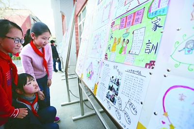 西安建國路小學,一個有關“家風家訓”的手抄報展覽吸引了許多人駐足觀看。光明圖片/視覺中國