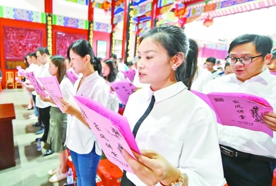 2017年“五四”青年節當天,福建省福安市組織年輕人開展“家風講堂”活動,傳承和弘揚優秀家規、家訓和家風。新華社發