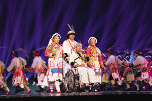 而對于傈僳族群舞《輪椅上傳承的阿尺木刮》來說,編導兼主演余勇興是在用生命傳承和保護本民族的文化——這位第5代民間藝術傳承人,5年前在一次深入民間藝術采風的路上,遭遇車禍致使雙腿殘疾。這位坐在輪椅上的傳承人的故事,打動了無數觀眾。