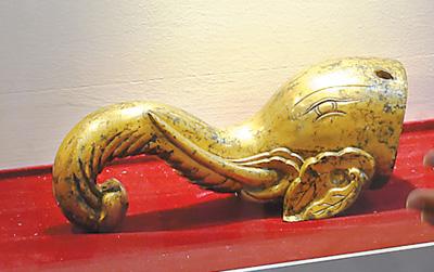 同時,我們注意到發掘于圓明園大宮門遺址御河內的銅鎏金象首,象牙微挑,眉目傳情,脈絡清晰,閃閃發亮,吸引游客駐足欣賞?!般~鎏金象首的制作工藝要遠遠在十二生肖之上,是清代皇家用器精品”,張利芳說。據悉,銅鎏金制品目前挖出僅此一件。