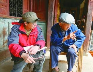 范穩在采訪抗戰老兵。資料照片
