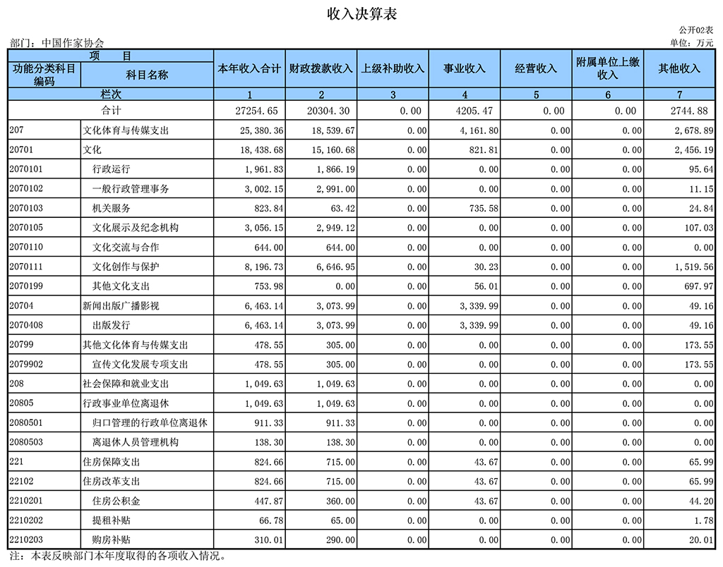 八、文化體育與傳媒(類)文化(款)一般行政管理事務(項):指中國作協本級組織作家深入生活等各項支出。