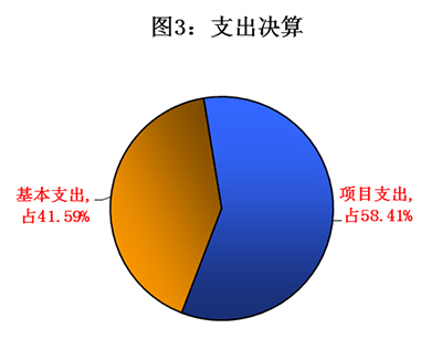 本年支出合計25638.79萬元,其中:基本支出10662.26萬元,占 41.59%;項目支出14976.53萬元,占 58.41%。