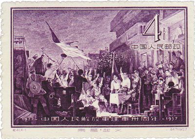 解放戰爭期間,人民軍隊以“中國人民解放軍”的光榮稱謂,所向披靡,解放全中國,完成了“南昌起義”所奠基的歷史使命。僅華東人民郵政,1949年3月發行了江淮解放紀念郵票;5月發行了淮海戰役勝利紀念郵票,以及南京、上海解放紀念郵票。
