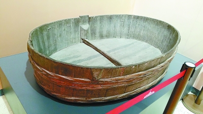 在“奪取全國解放戰爭勝利”展區,一只看似普通的大木盆也有著一番傳奇經歷。這只長1.7米,寬1.15米,高0.38米的大木盆,是華東野戰軍著名偵察英雄齊進虎等在渡江戰役前夕到黑沙洲偵察敵情時用過的渡江工具。