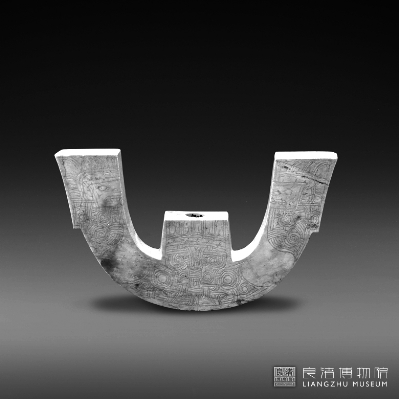良渚遺址出土的玉質三叉形器,出土時位于墓主人頭部,應屬冠帽上的飾物。 (圖片來源于良渚博物院)