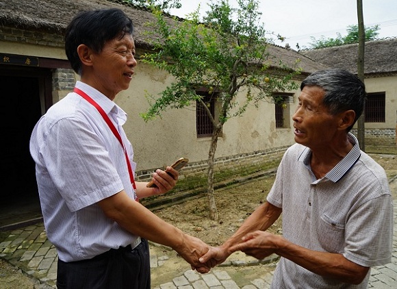 文昌宮不遠處,便是淮海戰役總前委指揮部的另一處舊址——小李家。小李家是當時濉溪縣的一戶姓李的人家。13日,采訪團到小李家的時候,一位叫李松林的老人正在院子里打掃房屋,老人是這個房子的老房東,當時就是他的父親李光者主動把房子讓給解放軍的?,F在的小李家已經成為紅色革命根據地,每天都會有人前來參觀,李松林幾十年來堅持在這個院子里為大家作義務講解。老人告訴大家,當年劉伯承、鄧小平、陳毅從文昌宮轉移后,就在這里工作和生活?!拔腋赣H告訴我,鄧小平同志還抱過我呢,只是沒有留下照片?!崩先苏f這句話時,臉上露出憨厚而自豪的笑容?!拔乙残绽?,你們家曾為革命、為國家付出這么多,是咱們李姓的驕傲”,團員李西岳與老人緊緊地握著手說。