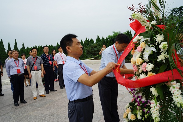 斯大林曾說,淮海戰役打得很好,是中國革命戰爭史上的奇跡。破譯這個奇跡,需要了解淮海戰役這段歷史。8月11日,采訪團來到淮海戰役紀念館,參觀了戰前形勢廳、戰役實施廳、人民支前廳。紀念館中,一處人民支前體驗區引起了大家的注意,團員們紛紛走進體驗區,或推車,或碾磨。講解員告訴大家,淮海戰役期間,老百姓就是用這些工具碾磨糧食,并把糧食拉到前線的。團員們感嘆,那個時候,推著小車在炮火中穿行,不僅需要體力,更需要勇氣,然而他們中大多沒有留下姓名,成為紅色書寫中空白的一頁?!叭绻艹袚惠v獨輪車的分量/又何嘗不是/他們當中的某一個?”團員李皓希望通過自己的詩歌,讓人們記住為戰爭提供后勤保障的無名英雄們,他們是后方最堅實的力量。團員武立金有同樣的感受,他寫道,“切莫忘記/軍功章啊/有沖鋒戰士的一半/還有小推車的一半”。采訪團隨后來到淮海戰役烈士紀念塔,向在戰役中犧牲的13萬烈士默哀鞠躬。