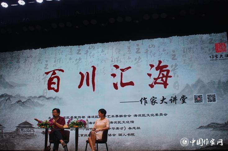 “百川匯海?作家大講堂”系列公益講座由北京海淀區委宣傳部、海淀區文聯、海淀區文化委主辦,海淀區作協、海淀區文化館承辦,中國作家網、《中華英才》雜志社、北京絲路文化發展協會、國人書院協辦。北京大學中文系主任陳曉明、首都師范大學教授張志忠、海淀區作協主席石鐘山擔任文學顧問,中央電視臺新聞主播崔志剛擔任藝術顧問。講座旨在邀請活躍在當代文壇上的著名作家、文藝理論家、港臺作家以“師說”的名義走上講臺,每月一講,通過創新講座的內容與形式,不斷給廣大文學愛好者以全新的視聽效果,強調“師者”與受眾者的互動,助力實現廣大文學愛好者的文學夢想。