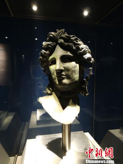 圖為青銅阿波羅頭像,是意大利國寶級文物。意大利文博專家稱阿波羅青銅頭像是1930年12月漁民在意大利薩勒諾海灣捕魚時發現的。按比例推測,它應是一座大型雕像的頭部??上У氖?,該雕像身體部分至今尚未被發現。 錢濤 攝