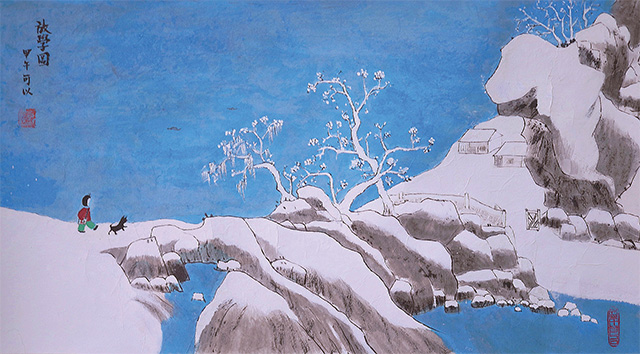2013年的某天飯后,試用余墨涂鴉,突然上了癮,畫了上百幅小畫,繪出記憶中紅衣綠褲的孤獨童年與美麗故鄉,到小畫成書,翻閱時依舊憂傷,且溫情蕩漾。知曉自己無繪畫基礎,那么多人歡喜小畫的稚拙天真,心里很慚愧,打算接下來花工夫臨摹清末畫譜《芥子園畫譜》或名人水墨,掌握畫山水樹木花鳥蟲魚的基本技巧,以便新作經得起細致觀賞。有人說沒必要那么做,保持天然野生,無根無派的很好。這使我想起另一種觀點,意思是大學教育沒用,千萬不要去上大學。這觀點我不太贊同,社會里壞且復雜,那就不要到社會去了。我們身在某處,不是單純地、被動地接受教育,更潛在的是,在過程中發現自我、形成自我、證實自我,一個人的成形,取決于自己的底色,你是自己的主干。一棵冬天里落滿雪的樹,根莖仍然在土地里生長,汁液依舊流淌,若不是毀滅性的破壞,它總是按自己的樣子成長。當然只是打個比方。在漫長的被教育過程中,始終有一個自我的核仁,這顆核仁要么自我分解、要么被敲碎,要么長得堅不可摧。硬核,也就是人格與思考的獨立部分,敏銳,智慧,這一部分將是卡住小齒輪的石子。