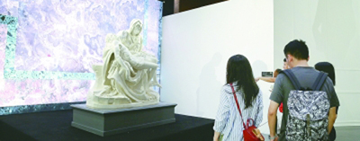 觀眾在現場參觀米開朗基羅雕塑復刻作品。圖片為本報記者 于園媛攝/光明圖片
