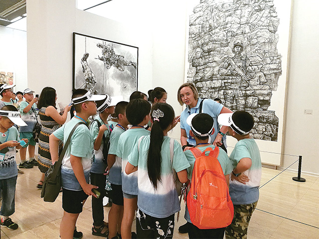 熙熙攘攘的觀展人流中,不同膚色不同年齡的外國友人無疑是一道亮麗的風景,馬克西姆是北京外國語大學的一位留學生,他字正腔圓地說:“超贊!”露絲是個性格開朗的法國女孩,一進展廳,就興奮地掏出隨身攜帶的寫生本坐在地上臨摹,她說:“這些畫很震撼,中國的文化很博大?!?/p>