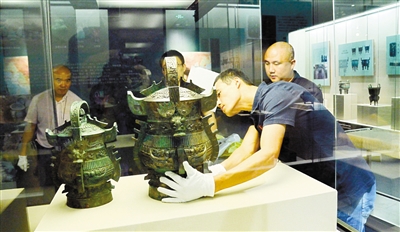“展品涵蓋了新中國成立以來歷次重要的考古發現,諸如眉縣楊家村窖藏、扶風五郡西村窖藏、石鼓山西周墓等近十幾年來的新發現也都悉數登場。這些青銅器造型奇特、紋飾華麗、工藝復雜、銘文豐富,代表了西周青銅文明的最高成就?!惫鶎W雷表示,此次亮相的商周青銅器大多出土自陜西寶雞。他說,寶雞,地處陜西關中平原西端,是西周的發祥地和畿輔要樞,青銅文化遺存極為豐富,被譽為“中國青銅器之鄉”。自西漢年間的“尸臣鼎”到晚清的“四大國寶”——毛公鼎、大盂鼎、散氏盤、虢季子白盤,兩千年來,寶雞出土了數以萬計的青銅器。新中國成立以來,寶雞發現的青銅器更是令世人矚目,諸如西周初年的重器何尊,史籍失載的國青銅器以及岐山董家、扶風莊白、眉縣楊家村青銅器窖藏,都極大地震撼了世人對西周歷史的認知。2012年以來,寶雞石鼓山又相繼發現了一批重要的商周墓葬,其中出土了不少罕見甚至是首次發現的青銅珍品,被評為2013年度“全國十大考古新發現”之一。