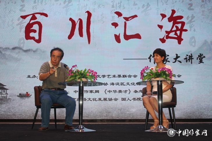 “百川匯海?作家大講堂”由北京海淀區委宣傳部、海淀區文聯、海淀區文化委主辦,海淀區作協、海淀區文化館承辦,中國作家網、《中華英才》雜志社、北京絲路文化發展協會、國人書院協辦,由北京大學中文系主任陳曉明,文藝理論評論家、首都師范大學張志忠,作家、海淀區作協主席石鐘山擔任文學顧問;由中央電視臺新聞主播崔志剛擔任藝術顧問。講座每月一期,邀請活躍在當代文壇上的著名作家、文藝理論家、港臺作家以“師說”的名義走上講臺,追求內容與形式的創新,強調“師者”與受眾者的互動。自2017年6月創辦以來,謝冕、劉慶邦、肖復興、陸天明等陸續在大講堂擔任主講,反響熱烈。