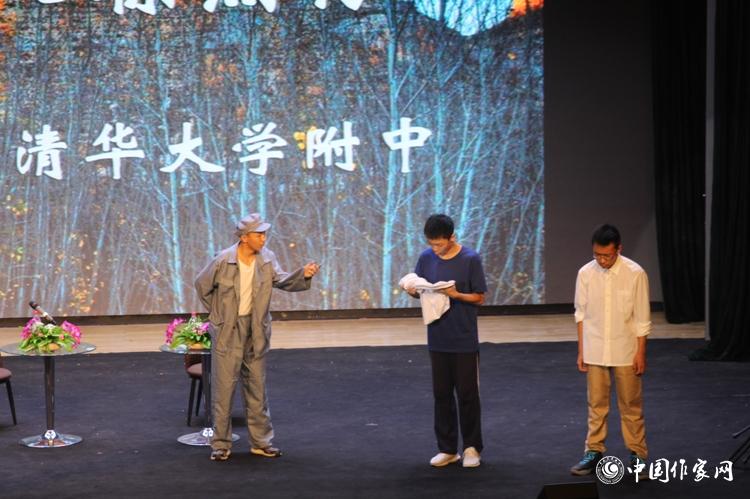 講座現場,清華大學附中的三位同學現場演繹陸天明話劇劇本《第十七棵黑楊》。在隨后的互動環節,陸天明就影視劇創作、年輕人如何保持健康的創作心態等問題一一作答。整場講座宛如一堂“教學相長“的文學課堂,持續到傍晚6時許。
