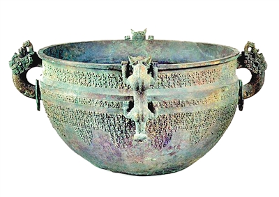原始初民的浴具以實用為主,但也不乏審美元素,各類浴具上往往刻有各類幾何紋,直線、曲線、水紋、三角紋、漩渦紋、鋸齒紋等等?,F存最古老的浴器“虢季子白盤”,青銅質地,盤口呈圓角長方形,曲尺形足,飾有波曲紋,沉雄厚實,線條雄健。春秋到兩漢時期的浴具,無用之用的美學功能更加凸顯。如吳王夫差鑒,兩側口沿旁刻有兩只小龍,前足在口沿,后足蹬著器壁,作探頭狀,如同窺浴,神氣活現,生動活潑,充滿了生活情趣。還有一些浴具如陶杅、沐盤等往往飾以貝紋、蟠螭紋、夔紋等紋飾,裝飾繁復華麗,姿態萬千,簡直就是觀賞藝術品。