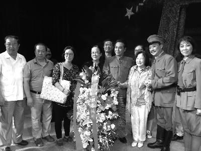 周總理在建黨建軍初期主要從事地下工作,掌握黨的大量機密,養成了謹言慎行的作風;新中國成立后又因日理萬機,極少談論往事,回顧自己的革命生涯。好不容易抽出時間來看舞臺上以他為主角的這臺表現重大革命歷史的京劇,觸景生情,不斷勾起他對戰斗生活的回憶。一臺戲演下來,他對一左一右坐身邊的靳玉民副市長和方華濤書記破天荒地說了許多話,提供了多處珍貴史料。比如,看到劇中把八一南昌起義指揮部設在江西大旅社,他說:“起義不是在這兒,實際是在一個天主教教會學校。不過從舞臺效果看,這樣也很好,你們就不用改了?!碑斂吹綉蛑邪涤鲝垏鵂c的副師長陳佑民對起義持消極態度,他說:“這個人很像張國燾,張國燾就那個樣兒?!毖莩鼋Y束時,他走上舞臺,不分主要演員和次要角色,也不管擁上來的是樂手,還是普通工作人員,熱情同每個人握手,以溫潤而慈愛的目光給每個真誠還原歷史的演職人員送去感激和贊許,并主動提議說:“先照個相吧?!?/p>