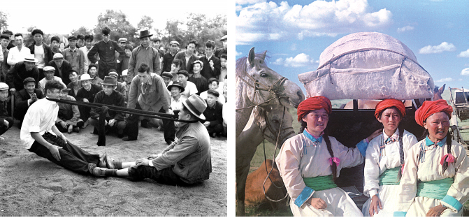 左:馴馬(1978年)、中:初征賽場(1973年)、右:蒙古包托兒所(1969年)
