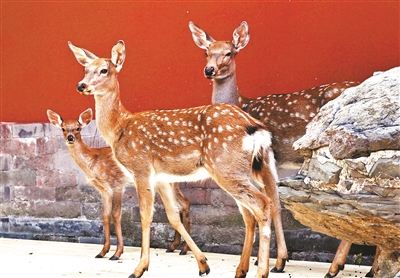九只活潑可愛的梅花鹿昨天亮相故宮博物院慈寧宮花園后,立即吸引了大批粉絲。北京青年報記者獲悉,9只梅花鹿是為配合下周即將開始的承德避暑山莊內野生梅花鹿及相關文物展,特意從避暑山莊調運至京,它們將在故宮生活至2018年2月底。