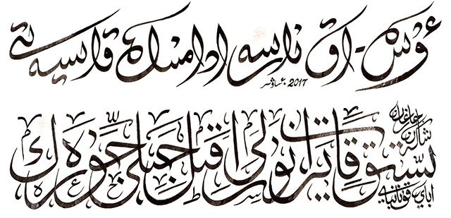 艾克拜爾·霍加艾合買提·賈汗(維吾爾族)作品,意為:人和,則天下太平。