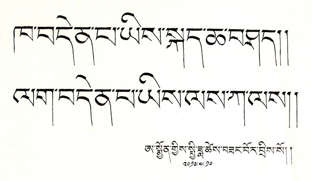 阿寧·扎西東主(藏族)藏文書法,意為:說實話,做實事。
