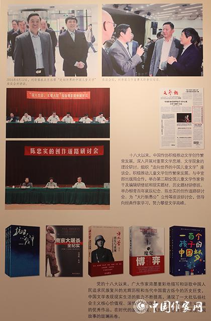 展覽主要內容共分為“明確道路 指明方向”、“深入生活 扎根人民”、“風云際會 繁花似錦”、“講述中國故事 弘揚中國精神”和“深化體制改革 強化服務意識”等5大部分,全面宣傳展示了黨的十八大以來中國特色社會主義文學事業繁榮發展的新局面。