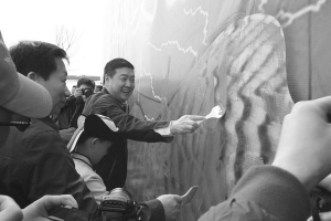 王文彪和孩子們一起讓畫布上的沙漠變成綠洲。魏寶紅攝