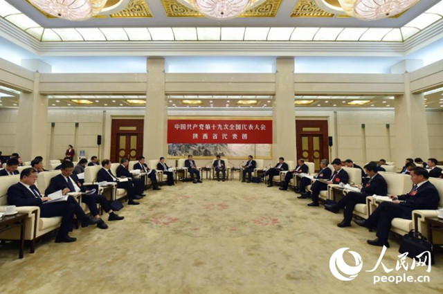 陜西代表團討論現場(人民網記者 翁奇羽 攝)